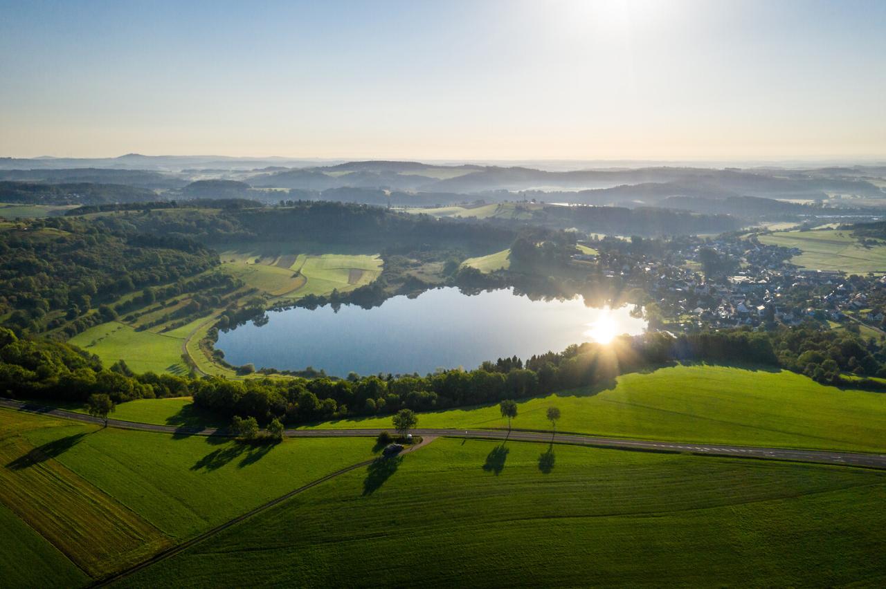 Ähnlich beeindruckende Ausblicke warten auch am Mosenberg – und eines der 80 besten Geotope Deutschlands. Hier hast du einen 360°-Panoramablick über die Vulkanlandschaft und erfährst außerdem im Vulkanerlebnispark, aus explosiven Ausbrüchen entstanden ist. Ganz vorbei ist es mit dem Vulkanismus bis heute nicht, aber keine Sorge: der letzte Ausbruch fand vor etwa 13.000 Jahren statt und schuf den Laacher See. Und sollte das Wetter mal nicht mitspielen, bestaunst du im Maarmuseum Manderscheid ein Fossil des „Urpferdchens“ – des Vorfahren unserer heutigen Reittiere.